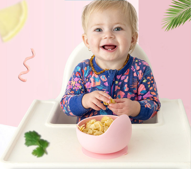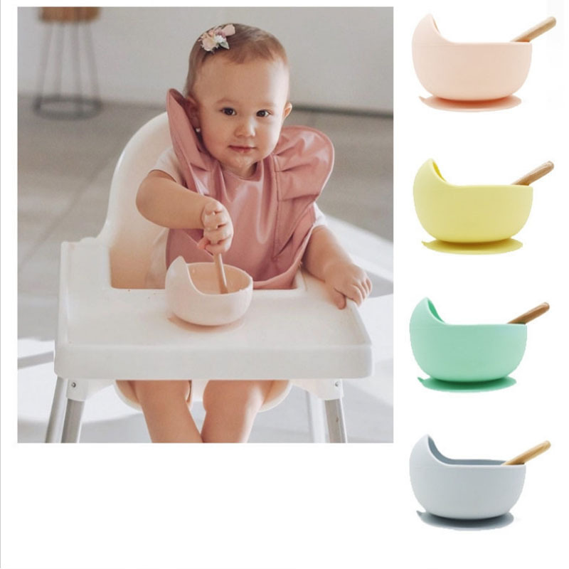 Product Details of High Quality Food Graded Non-Slip Baby Silicon Bowl and Spoon Set | Wood Suction | Grey Color